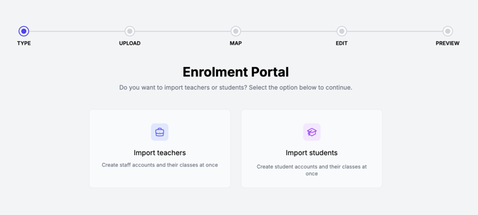 - Depending on the data you have available, either: Import Teachers or Import Students. If providing both, repeat the process for each.