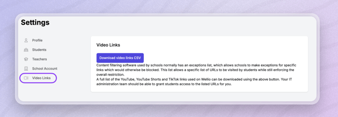 Once you've got the list, you can send this through to your school's IT team to add these links to your school's 'exceptions list'. This will allow your students to access the videos they need for their lessons, while still keeping the rest of the internet filter rules in place.