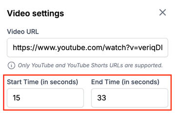 - Enter in the time (in seconds) that you want the video to start playing and end at.