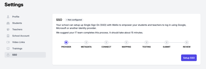 ⚠️ Before you start: IT admins will need admin access in Wellio to complete the SSO setup. Please contact your school's Wellio admin to request access, or email support@wellioeducation.com